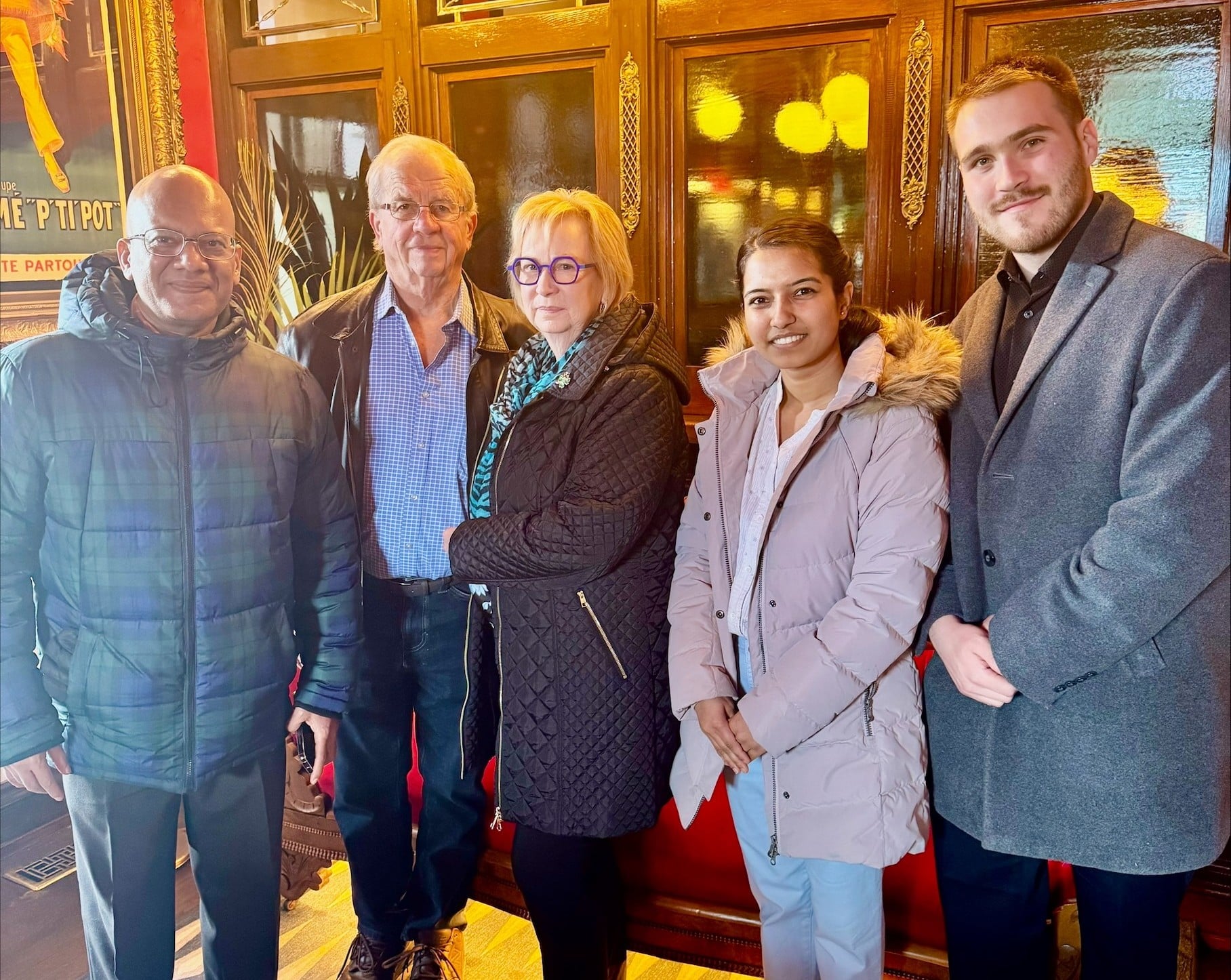 De gauche à droite : Thomas Netticadan, chercheur, Frank et Jeanne Plett, donateurs Sunita Karki, étudiante à la maîtrise, et Sandrius Mirochkinov, étudiant de premier cycle et autre bénéficiaire d’une bourse de stagiaire de recherche du fonds Frank et Jeanne Plett.