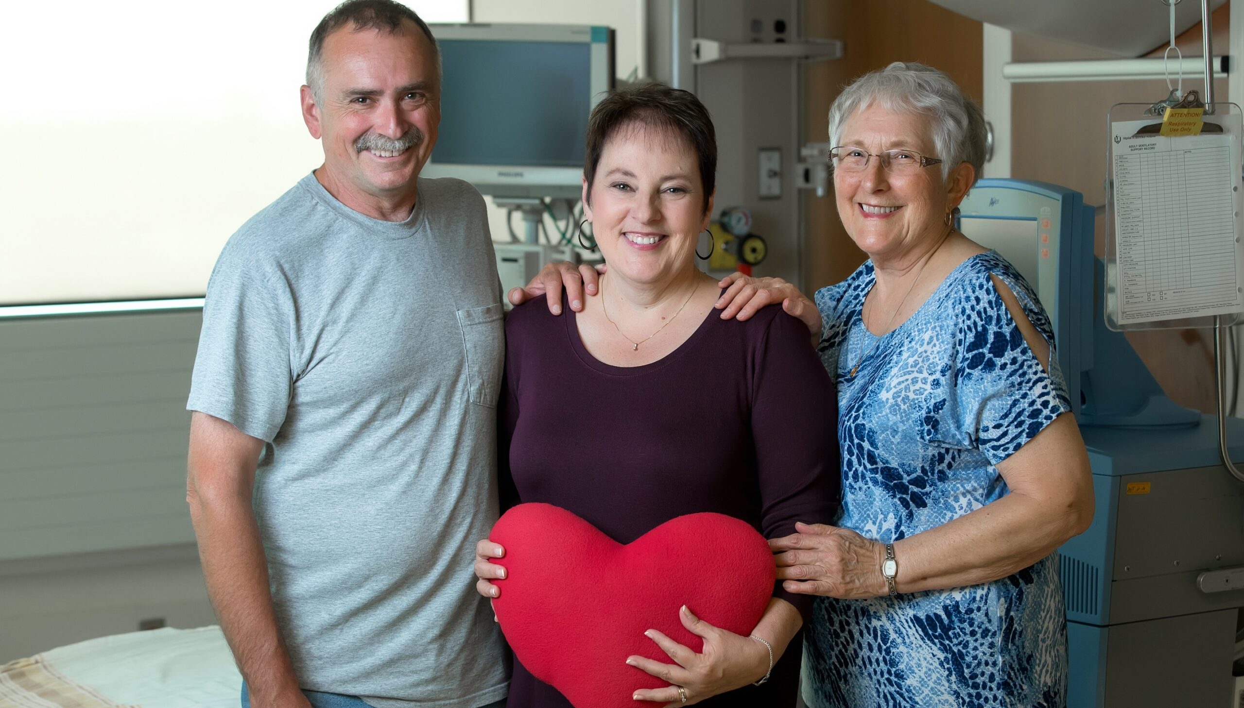 Pour l’aider à se rétablir de sa chirurgie cardiaque, Mme Clermont a reçu un oreiller spécial en forme de cœur confectionné avec amour par des bénévoles du centre Bell MTS. Six mois plus tard, elle se sert encore de ce coussin.