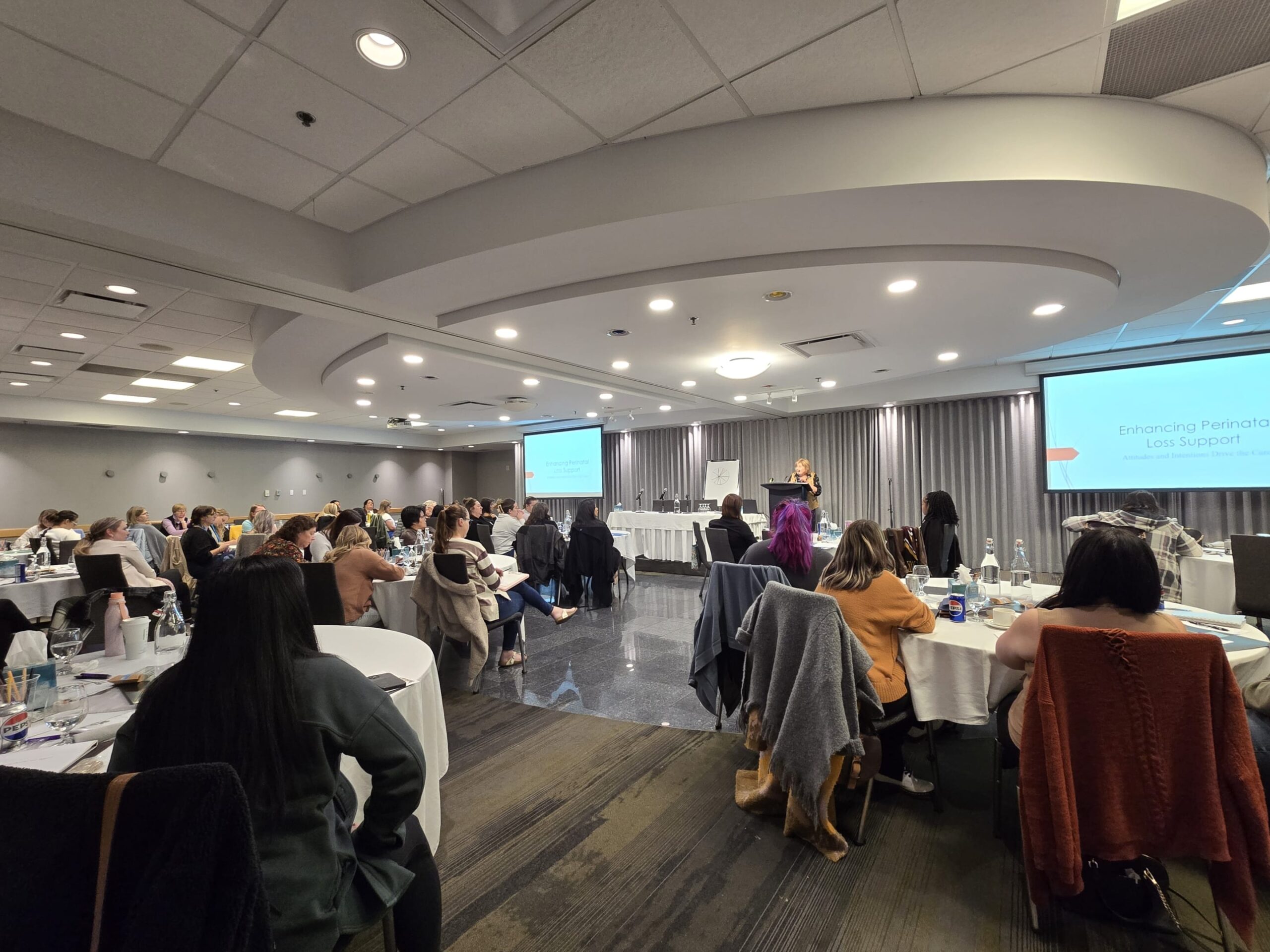 La conférence a accueilli environ 80 participants représentant presque tous les offices régionaux de la santé du Manitoba. Les participants comprenaient des infirmières, des médecins, des doulas, des travailleurs de soutien communautaires, des travailleurs sociaux, des thérapeutes, des sages-femmes, des travailleurs en santé spirituelle, des psychologues et des gestionnaires des soins de santé.
