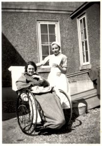 Nathalia Dupont (right) as a student nurse, with unidentified patient.